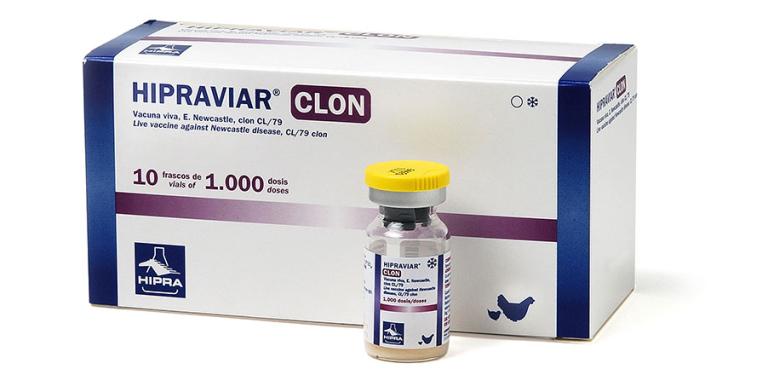 The use of cloned strains is a great improvement in live avian vaccines against Newcastle disease, since this makes it possible to have available a completely uniform vaccine virus population, with determined characteristics in respect to pathogenicity, minimum postvaccination reactions, absence of neutralisation by passively acquired antibodies and high immunogenic activity. These are the reasons why HIPRAVIAR CLON has been developed. This vaccine can be administered to all types of poultry without manifestations of secondary reactions and little neutralisation by passively acquired antibodies. Therefore, the active immunity conferred is longer lasting than conventional virus vaccines against Newcastle disease.
